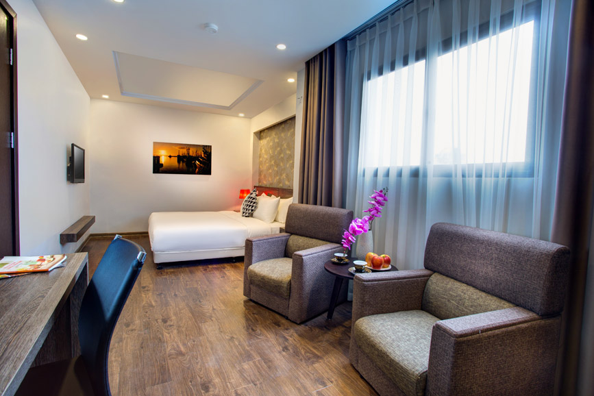 Phòng Superior Single mang đến một không gian thư thái để quý khách có thể xả hơi sau một ngày dài. Thiết kế lịch sự với nội thất tinh tế đảm bảo sự thoải mái tối đa và cảm giác như đang ở nhà cho mọi khách lưu trú.